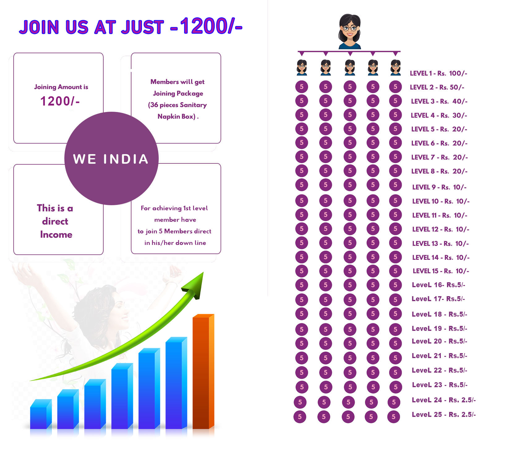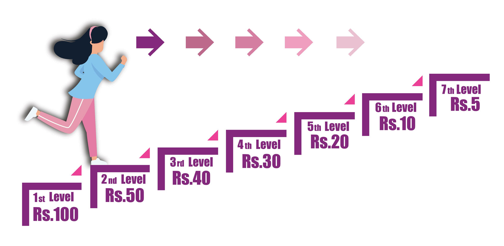 We offer a referral program through you will earn with each referral. You provide once they get their account activated. You will get to earn till 15th level once account under you gets activated. Only condition is you have to be an active member to be a part of this programme. Below we have mentioned the income structure for your participation :